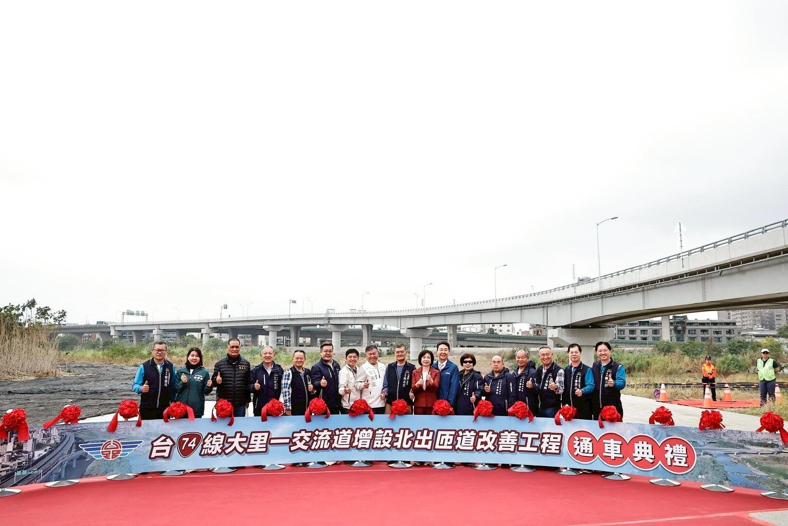 近年來,公路局持續推動台74線區域路網優化計畫,已陸續完成「草湖交流道」及「東昇里(六順橋)南入匝道」等工程,逐步建構更完整、便捷的快速上下匝道系統。本次大里一北出匝道啟用,除擴展台74線服務範圍外,更可有效連結大里區、十九甲地區及大里工業區,達到車流分流、降低主要幹道壅塞之效,進一步提升區域整體交通運輸效率。